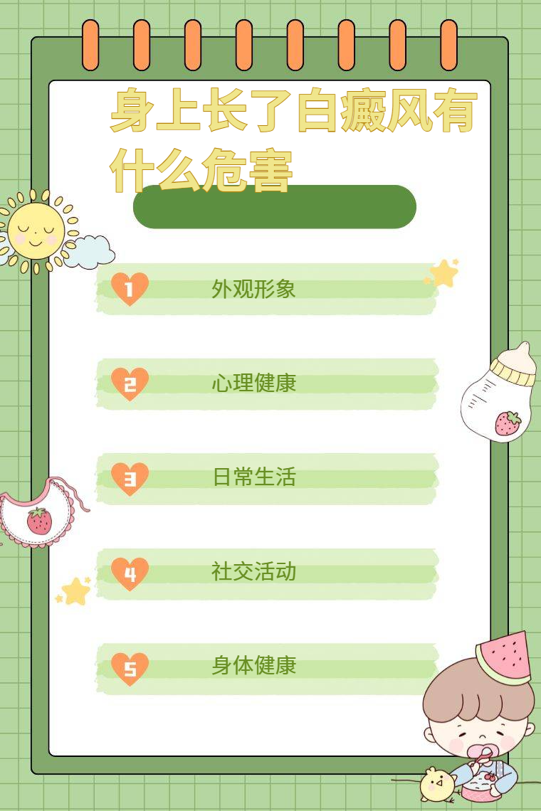 白癜风作为一种常见的皮肤疾病,会对患者的外观形象、心理健康、日常生活、社交活动、身体健康等方面造成危害。