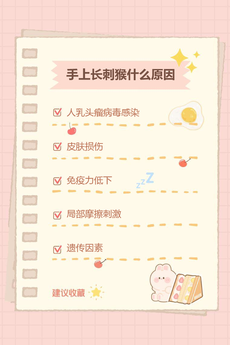 手上长刺猴常见原因有人乳头瘤病毒感染、皮肤损伤、免疫力低下、局部摩擦刺激、遗传因素等。