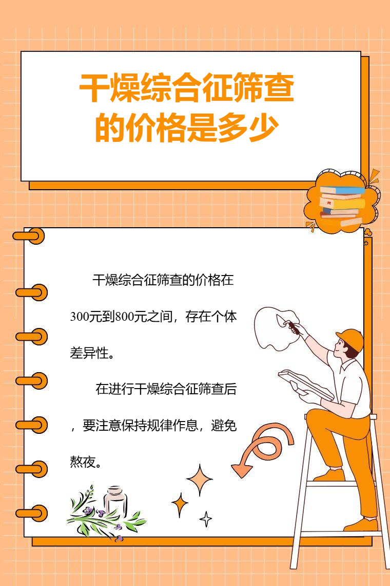 干燥综合征筛查的价格在300元到800元之间,存在个体差异性。影响费用的因素有检查项目、地区差异、检测机构等。