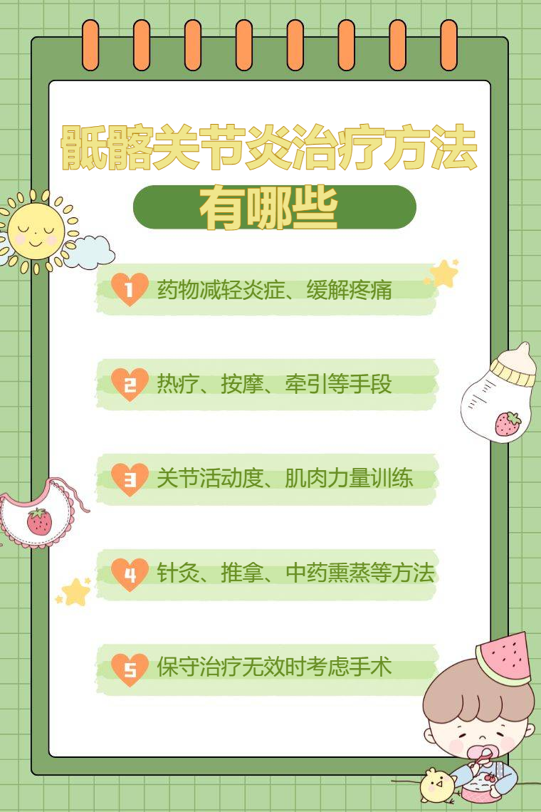 骶髂关节炎的治疗方法有药物治疗、物理治疗、康复锻炼、中医治疗、手术治疗等。