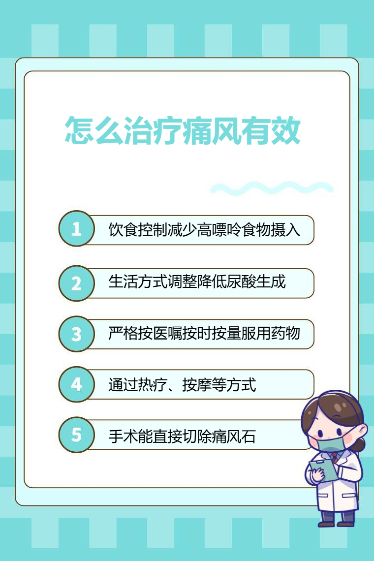 治疗痛风有效的方法有饮食控制、生活方式调整、药物治疗、物理治疗、手术治疗等。