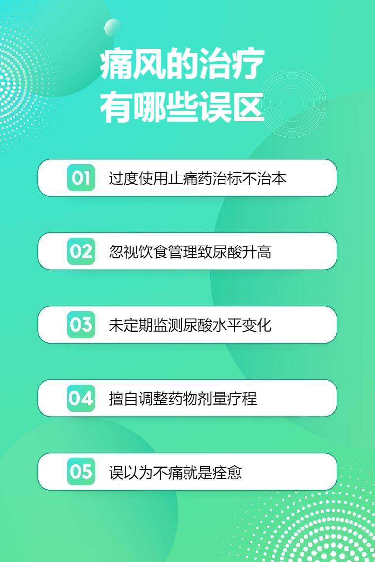 痛风治疗误区包括过度依赖止痛药物、忽视饮食控制、不重视尿酸监测、自行增减药量、认为症状缓解就治愈等。