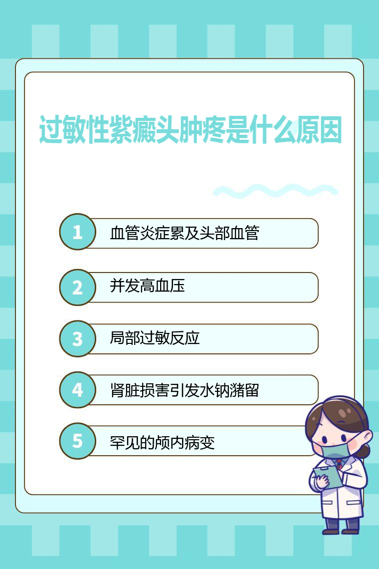 过敏性紫癜头肿疼的原因包括血管炎症累及头部血管、并发高血压、局部过敏反应、肾脏损害引发水钠潴留、罕见的颅内病变等。