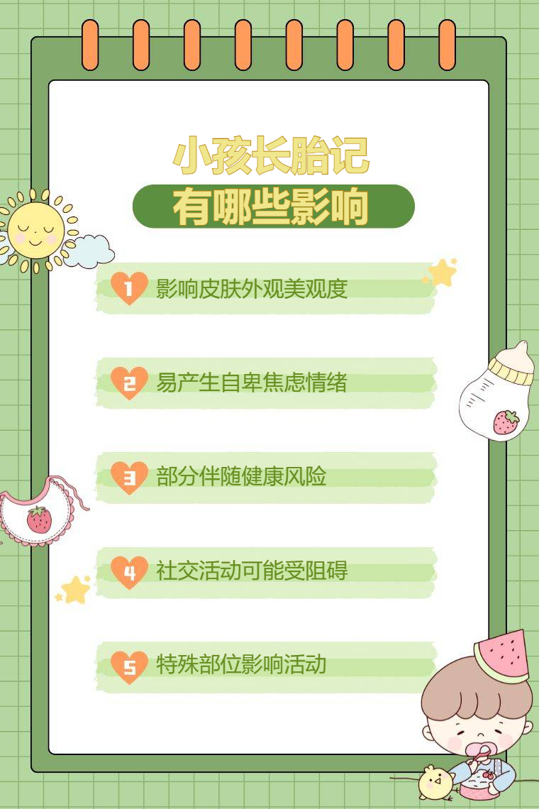 4. 社交互动:因胎记外观问题,小孩在社交中可能遭遇他人排斥或误解,阻碍正常社交互动,影响社交能力发展。