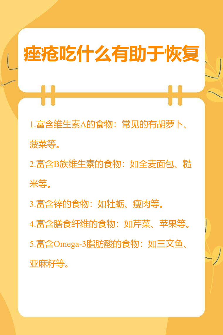 痤疮恢复可通过食用富含维生素A、B族维生素、锌、膳食纤维、Omega-3脂肪酸等食物来助力。