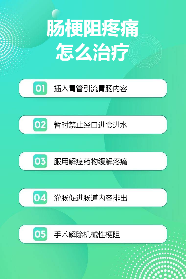 肠梗阻疼痛的治疗方法有胃肠减压、禁食禁水、药物治疗、灌肠治疗、手术治疗等。