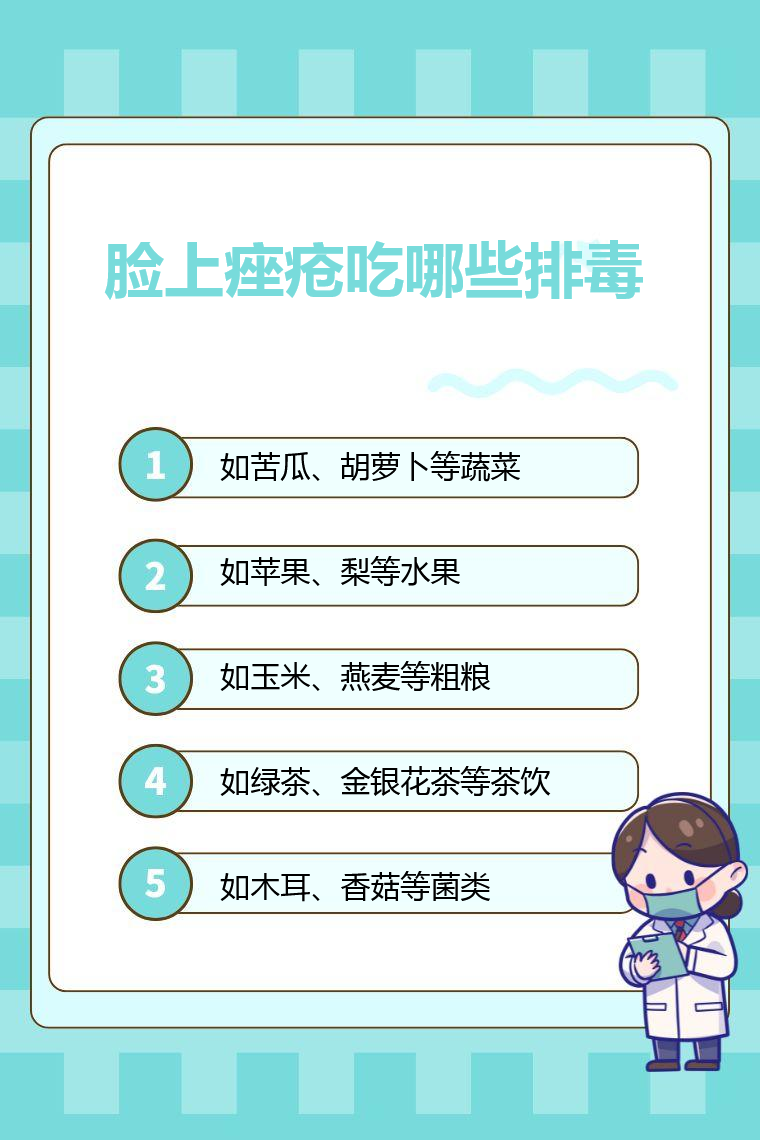 脸上有痤疮的人可通过食用蔬菜、水果、粗粮、茶饮、菌类等进行排毒。