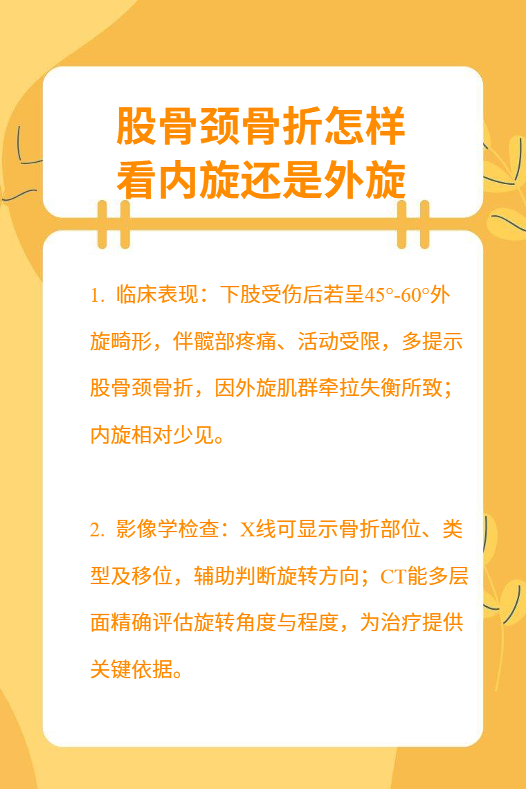判断股骨颈骨折内旋还是外旋可通过临床表现、影像学检查等。