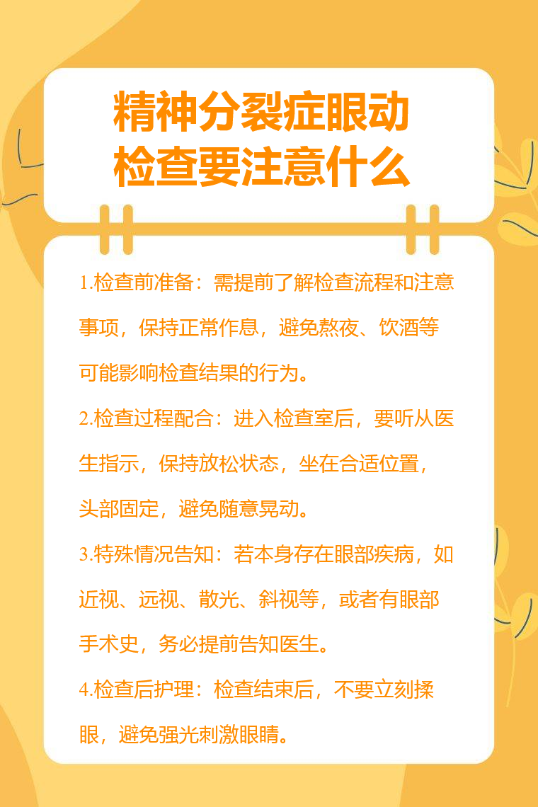 精神分裂症眼动检查要注意检查前准备、检查过程配合、特殊情况告知、检查后护理等。