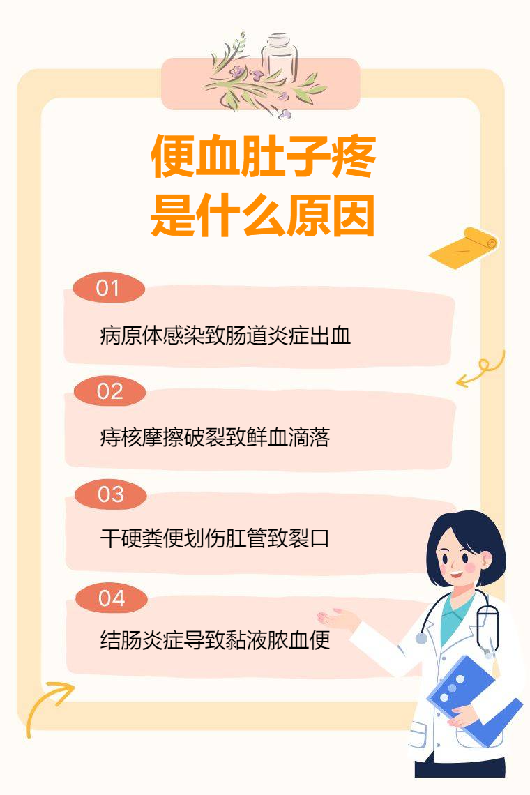 便血肚子疼常见原因有肠道感染、痔疮、肛裂、溃疡性结肠炎等。