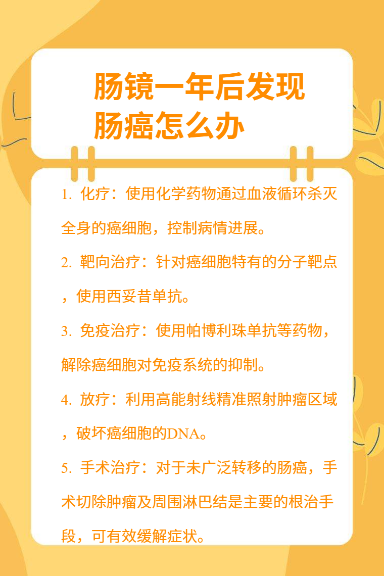 肠镜一年后发现肠癌可通过化疗、靶向治疗、免疫治疗、放疗、手术治疗等。