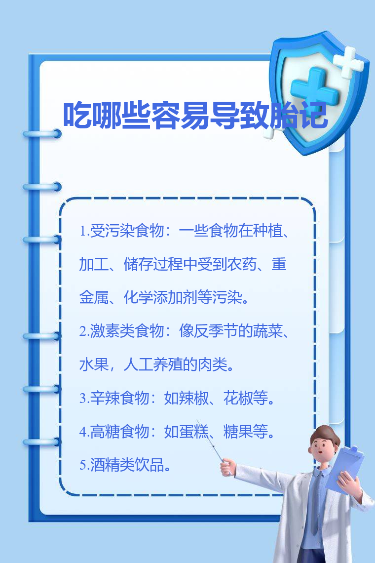 孕妇孕期食用受污染食物、激素类食物、辛辣食物、高糖食物、酒精类饮品等可能增加胎记出现几率。