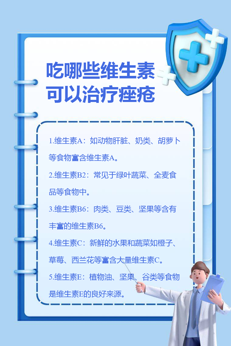 吃维生素A、维生素B2、维生素B6、维生素C、维生素E等可在一定程度上辅助治疗痤疮。
