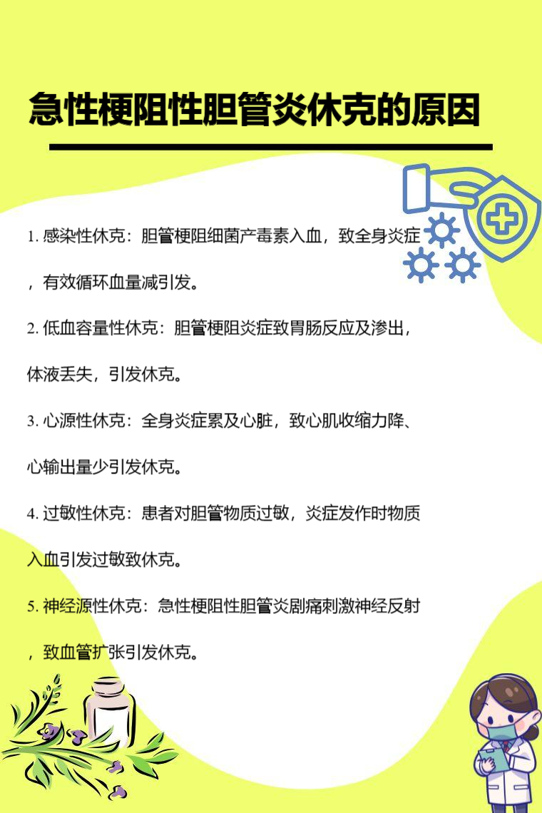 4. 过敏性休克:少数情况下,患者可能对胆管内的某些物质过敏,急性梗阻性胆管炎发作时,这些物质进入血液循环,引发过敏反应,导致血管扩张、血压下降,出现过敏性休克症状。