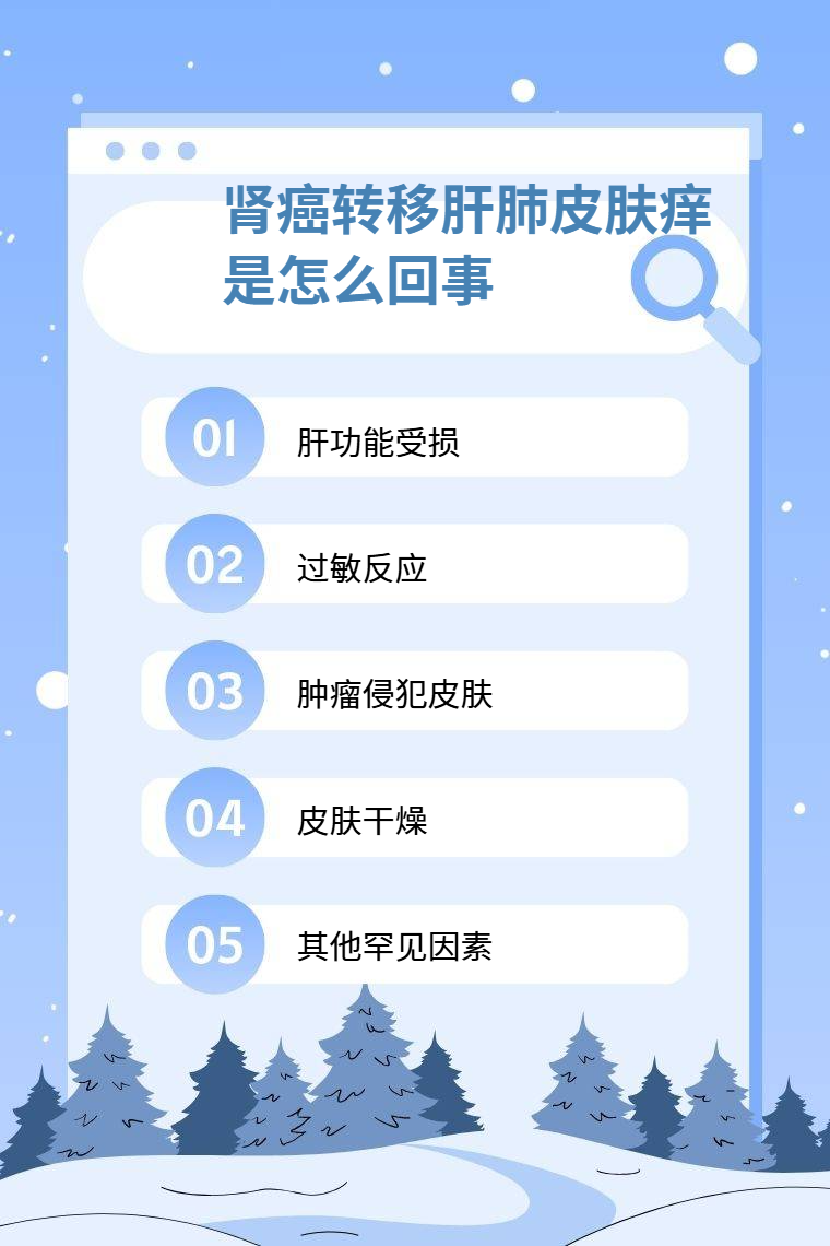 肾癌转移肝肺后皮肤痒可能是由肝功能受损、过敏反应、肿瘤侵犯皮肤、皮肤干燥、其他罕见因素等引起。