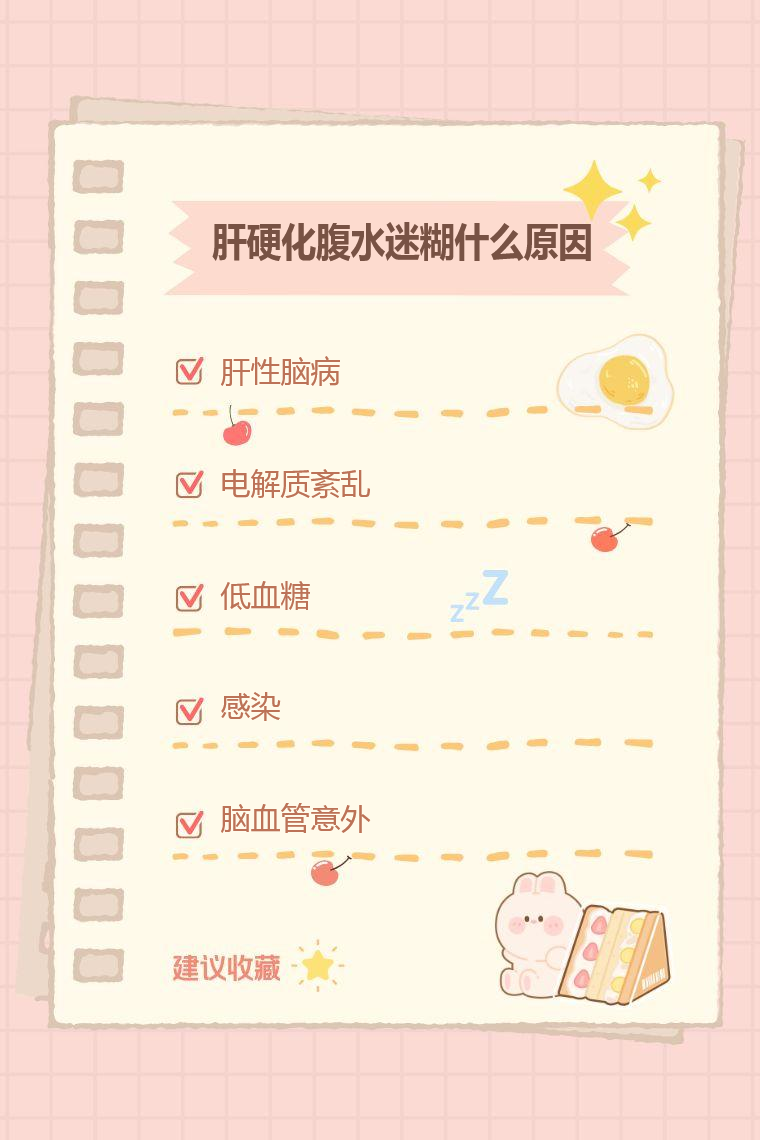 肝硬化腹水迷糊常见原因有肝性脑病、电解质紊乱、低血糖、感染、脑血管意外等。
