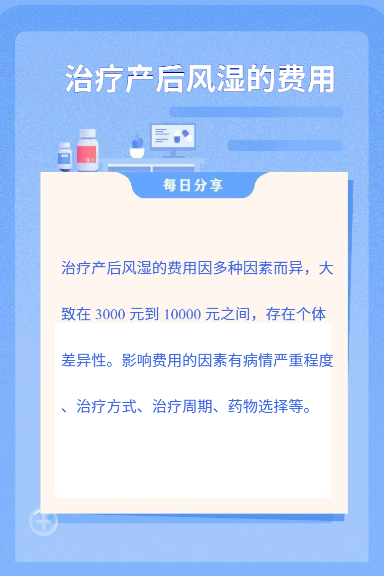 治疗产后风湿的费用因多种因素而异,大致在 3000 元到 10000 元之间,存在个体差异性。影响费用的因素有病情严重程度、治疗方式、治疗周期、药物选择等。