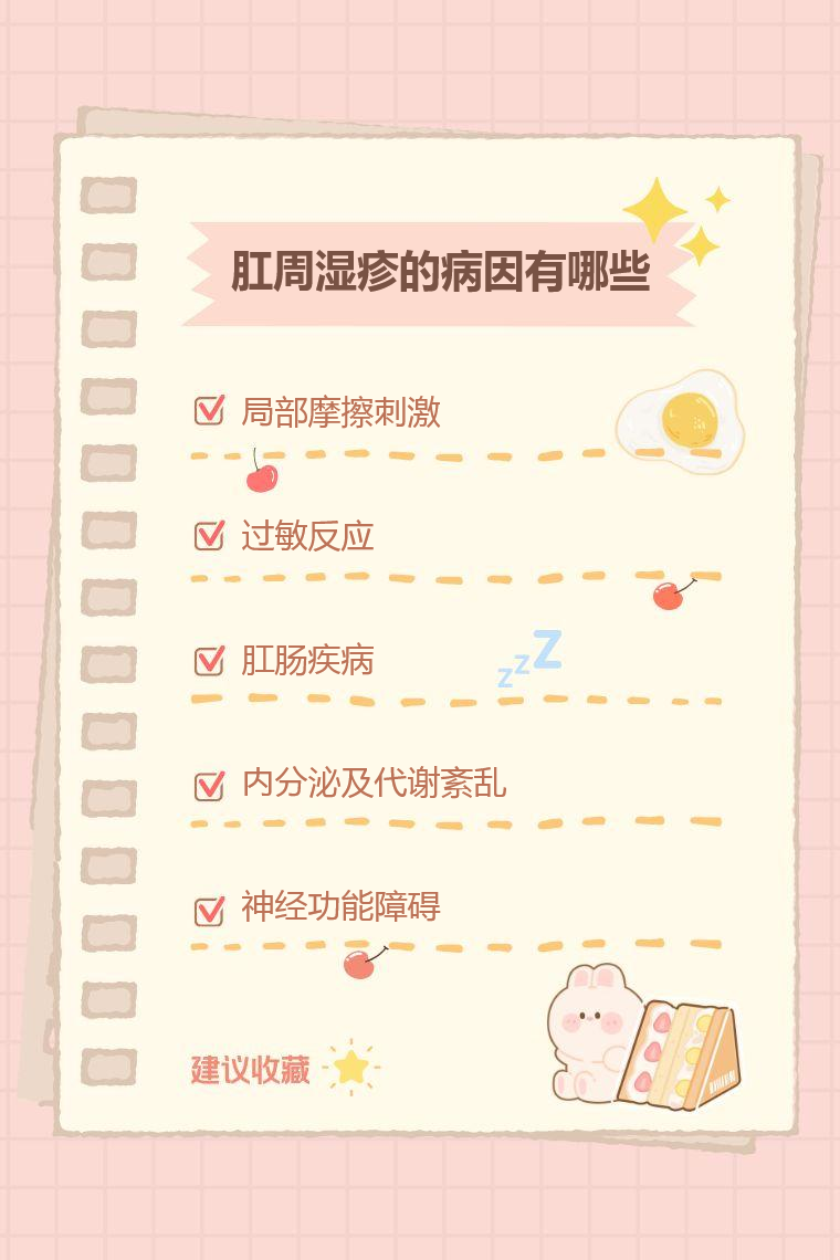 肛周湿疹的病因有局部摩擦刺激、过敏反应、肛肠疾病、内分泌及代谢紊乱、神经功能障碍等。