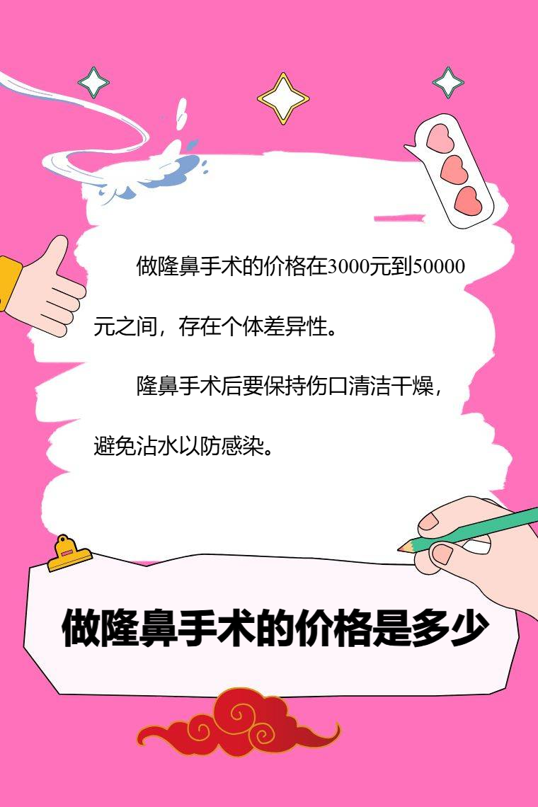 做隆鼻手术的价格在3000元到50000元之间,存在个体差异性。影响费用的因素有材料选择、手术方式、医生经验、地区差异等。