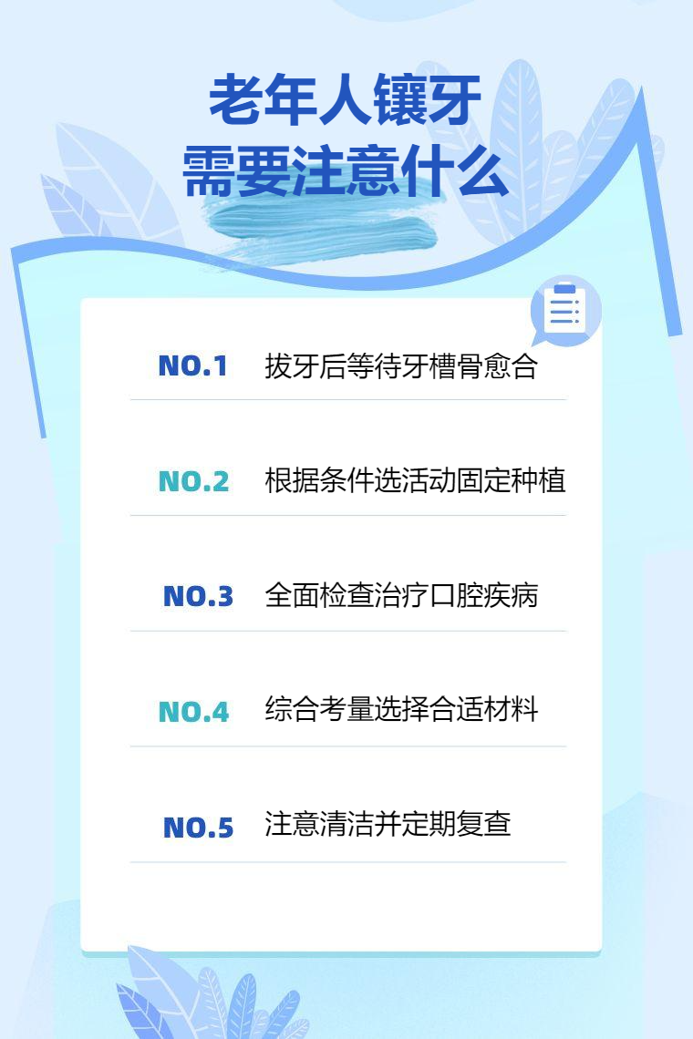老年人镶牙需要注意镶牙时机、镶牙类型选择、口腔检查、镶牙材料、日常护理等。