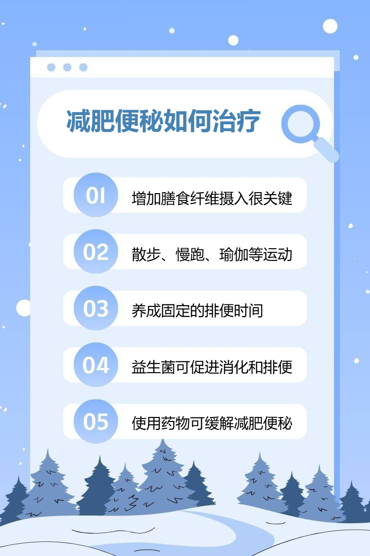 5. 使用药物:在医生指导下合理使用药物可缓解减肥便秘。如乳果糖口服溶液、聚乙二醇电解质散、开塞露等。乳果糖可调节结肠生理节律,聚乙二醇能增加肠道水分,开塞露能润滑肠道、刺激肠壁引起排便反射,从而有效改善便秘症状。