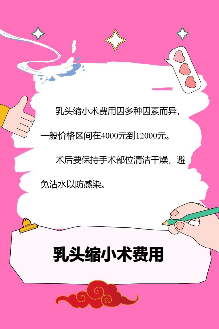 乳头缩小术费用因多种因素而异,一般价格区间在4000元到12000元,存在个体差异性。影响费用的因素有手术方式、地区差异、医生经验、乳头基础情况等。