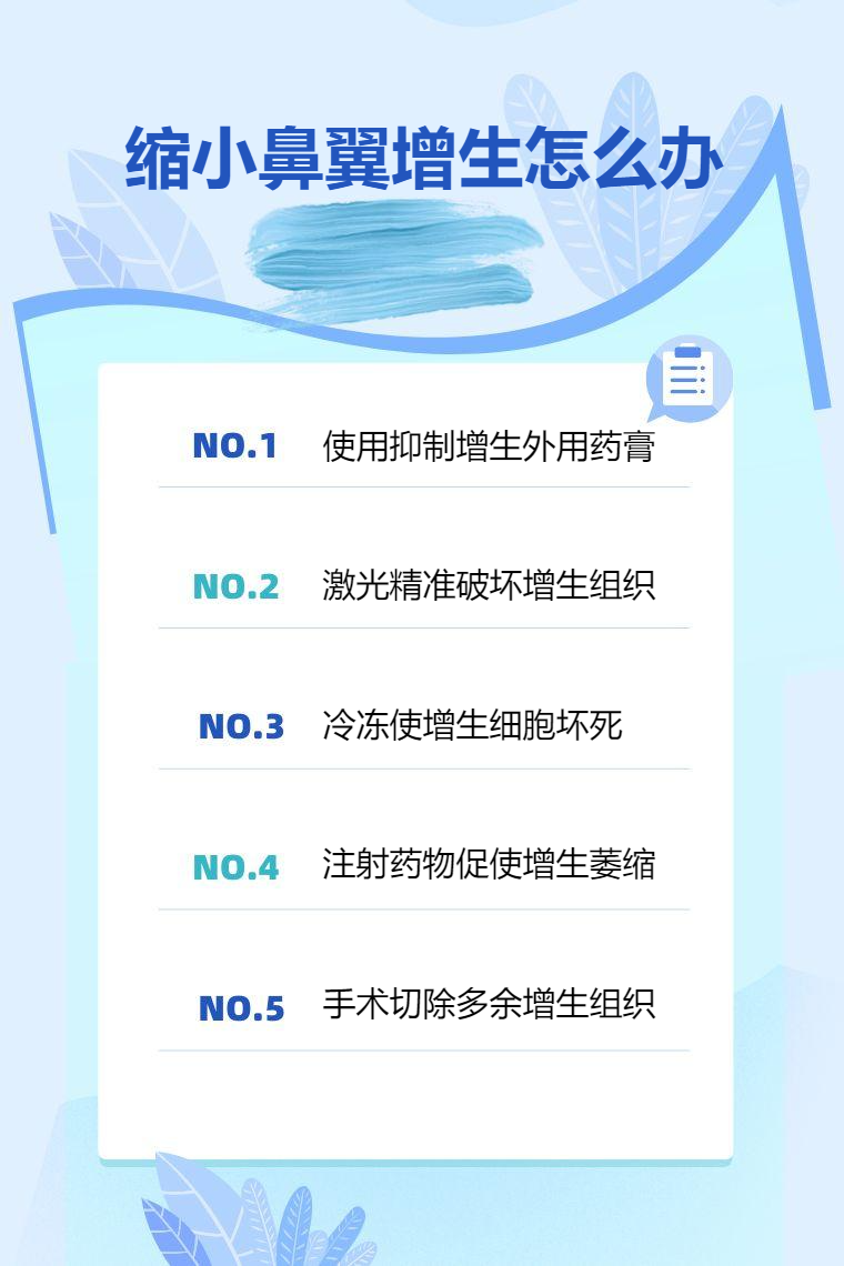 缩小鼻翼增生可以通过药物治疗、激光治疗、冷冻治疗、注射治疗、手术治疗等。
