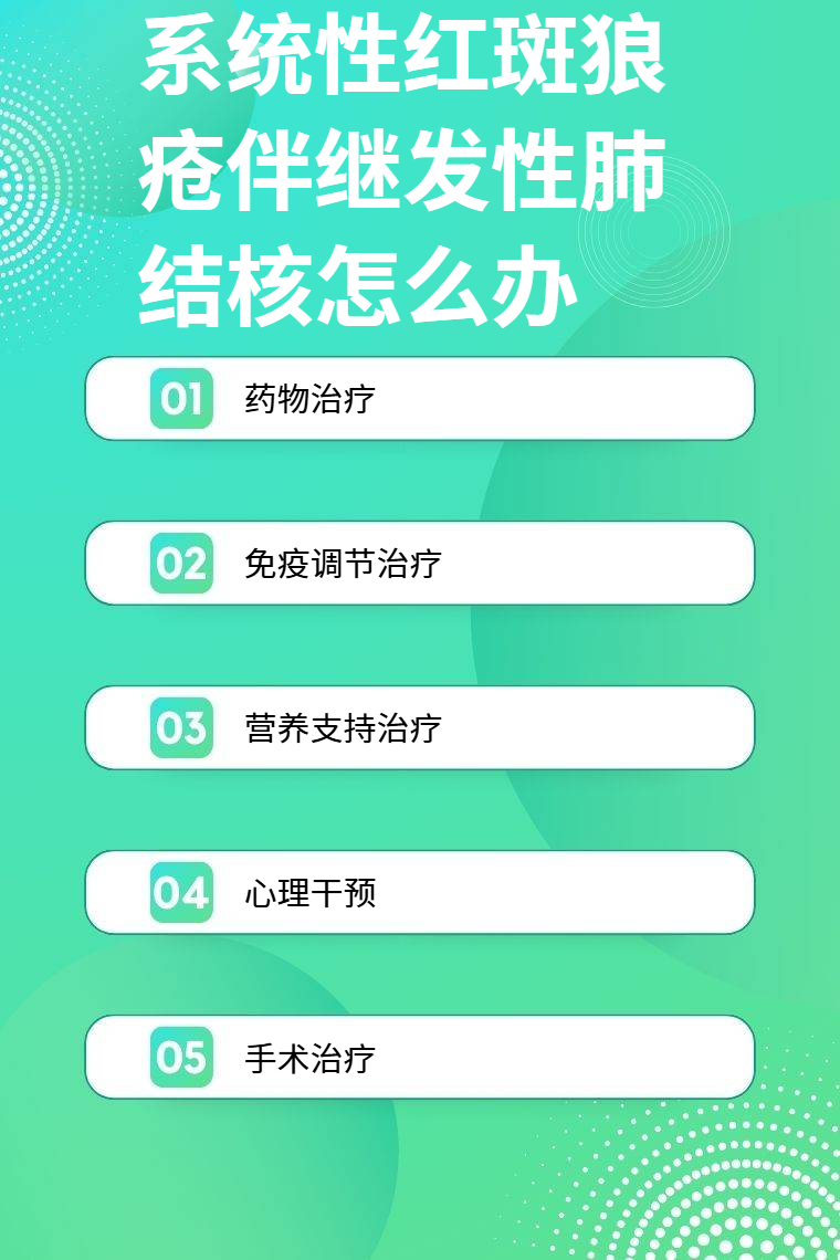 系统性红斑狼疮伴继发性肺结核可通过药物治疗、免疫调节治疗、营养支持治疗、心理干预、手术治疗等综合应对。