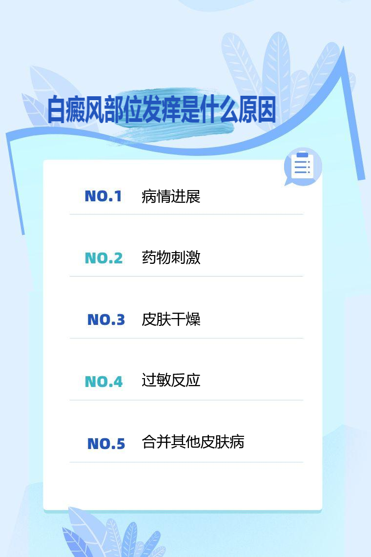 5. 合并其他皮肤病:白癜风患者的皮肤抵抗力相对较低,容易合并其他皮肤病,如脂溢性皮炎、银屑病等。这些皮肤病本身就会引起皮肤瘙痒,当与白癜风同时存在时,就会出现白癜风部位发痒的情况。