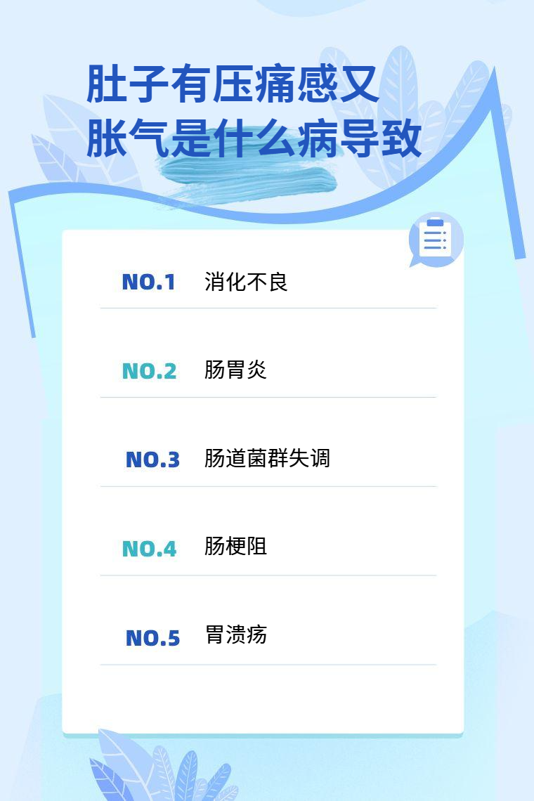 1. 消化不良:当进食过多、过快,或者食用了不易消化的食物时,胃肠蠕动功能减弱,食物在胃肠道内不能及时被消化和排空,就会产生气体积聚,引起胀气,同时胃肠道因食物堆积可能出现压痛感。