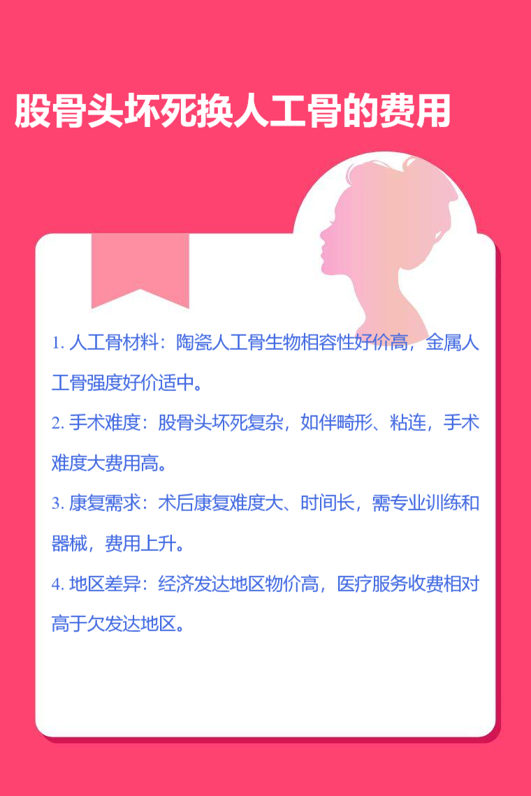 2. 手术难度:如果患者的股骨头坏死情况复杂,例如伴有严重的髋关节畸形、周围组织粘连等,手术操作难度增加,所需的手术时间延长,相应的费用也会提高。