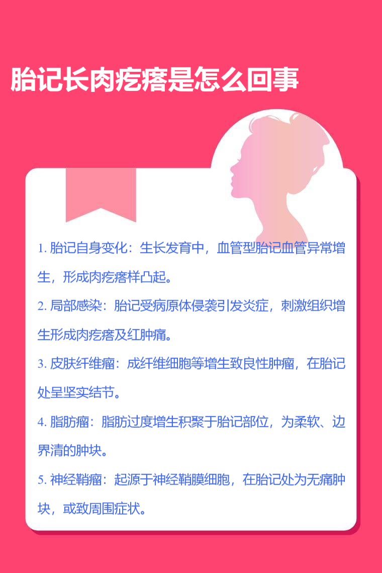 1. 胎记自身变化:胎记在生长发育过程中,可能由于多种因素影响而出现形态改变,比如某些血管型胎记,随着身体的生长,局部血管异常增生,可能逐渐形成肉疙瘩样凸起,外观上表现为高于皮肤表面的肿物,颜色可能与胎记原本颜色相近或有所加深。