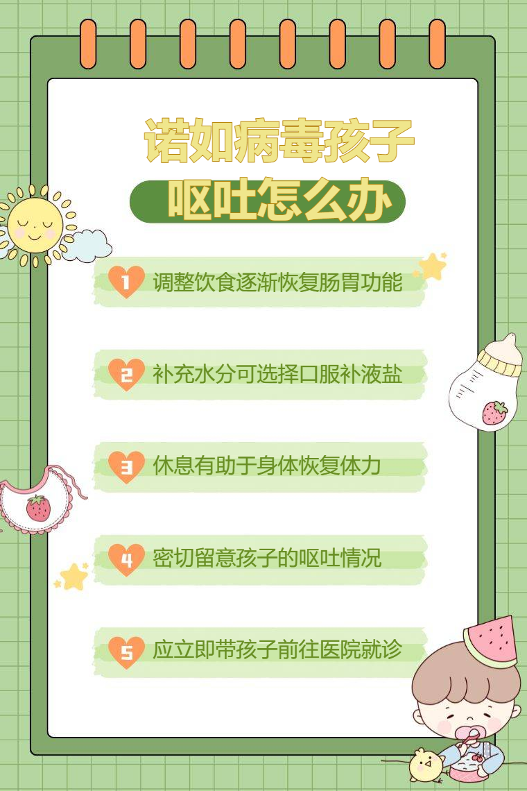 诺如病毒导致孩子呕吐可采取调整饮食、补充水分、合理休息、观察症状、及时就医等措施。
