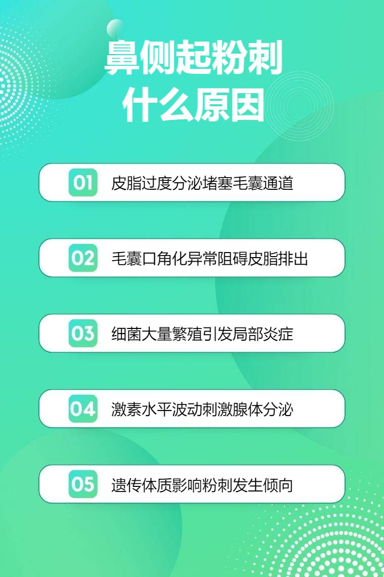 鼻侧起粉刺的原因有皮脂腺分泌旺盛、毛囊口角化异常、痤疮丙酸杆菌繁殖、内分泌失调、遗传因素等。