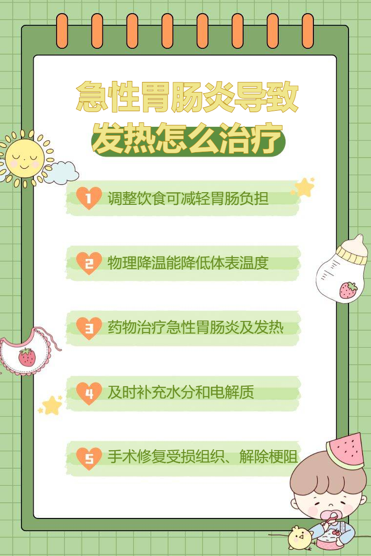 急性胃肠炎导致发热可通过调整饮食、物理降温、药物治疗、补充水分和电解质、手术治疗等方法进行应对。