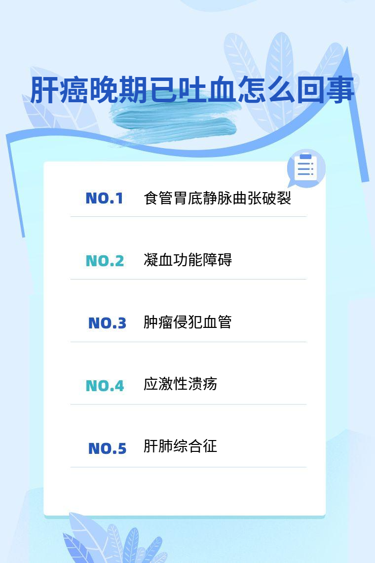 肝癌晚期已吐血常见原因有食管胃底静脉曲张破裂、凝血功能障碍、肿瘤侵犯血管、应激性溃疡、肝肺综合征等。