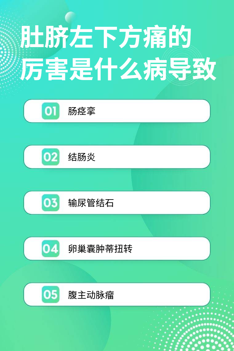 5. 腹主动脉瘤:是腹主动脉局部异常扩张形成的病变,瘤体增大压迫周围组织或发生破裂时,可出现肚脐左下方疼痛,疼痛性质多样,还可能伴有搏动性肿块、下肢缺血等症状,病情凶险。
