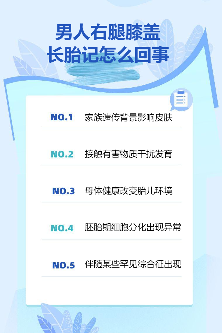 男人右腿膝盖长胎记可能是由于遗传因素、环境因素、孕期母体状况、胚胎发育异常、罕见疾病等。
