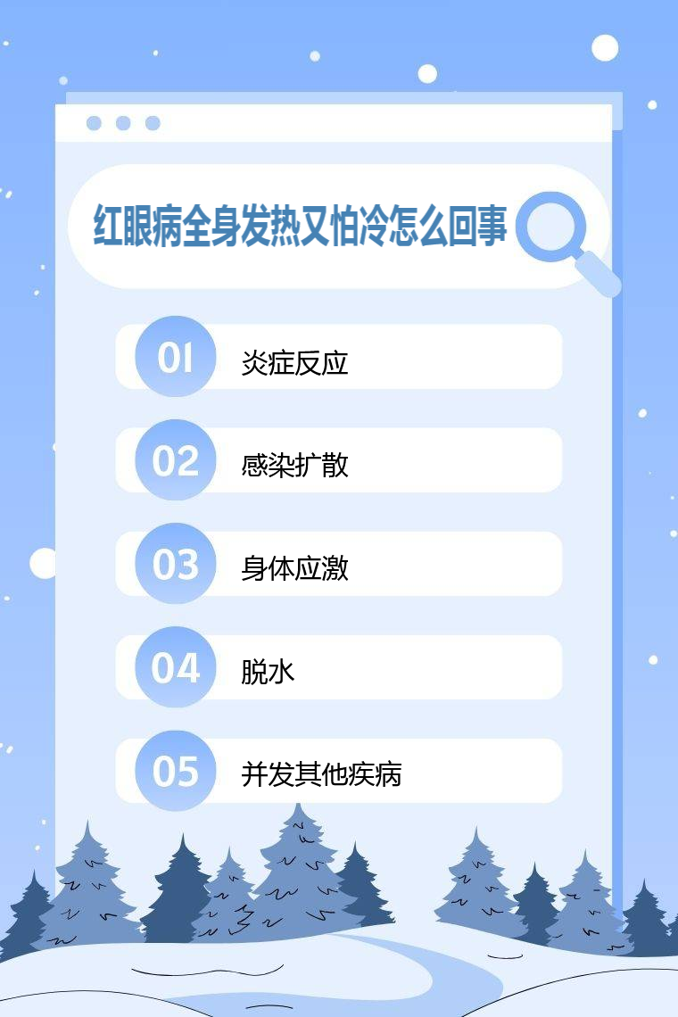 5. 并发其他疾病:红眼病患者身体抵抗力下降,可能并发其他疾病,如流感等全身性病毒感染,这些疾病会引起发热、畏寒等症状,与红眼病症状叠加。