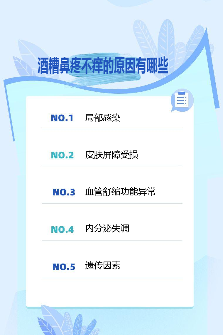 酒糟鼻疼不痒的原因有局部感染、皮肤屏障受损、血管舒缩功能异常、内分泌失调、遗传因素等。