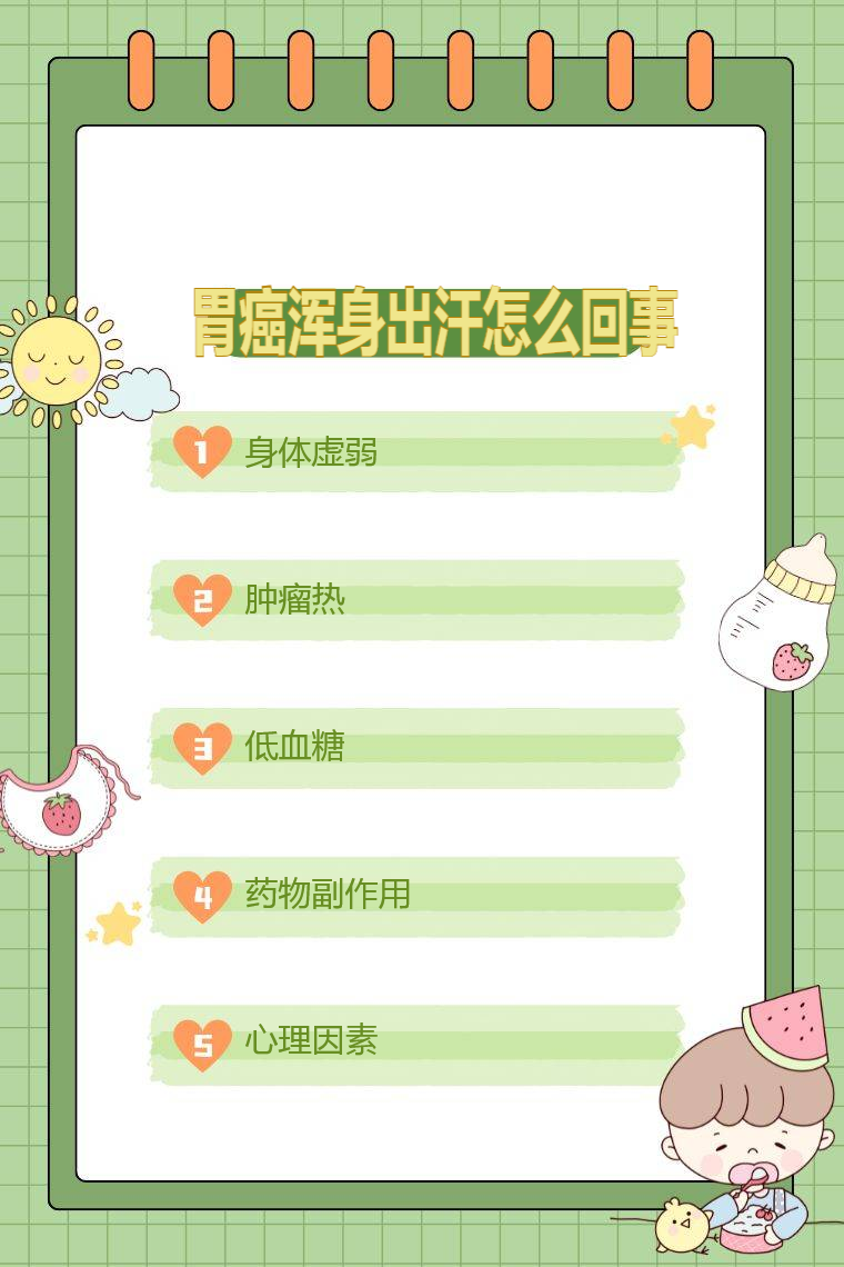 胃癌浑身出汗可能由身体虚弱、肿瘤热、低血糖、药物副作用、心理因素等。