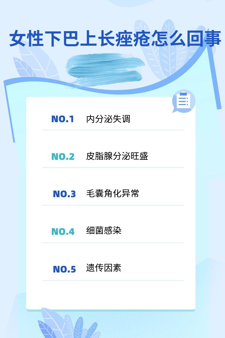 女性下巴上长痤疮常见原因有内分泌失调、皮脂腺分泌旺盛、毛囊角化异常、细菌感染、遗传因素等。