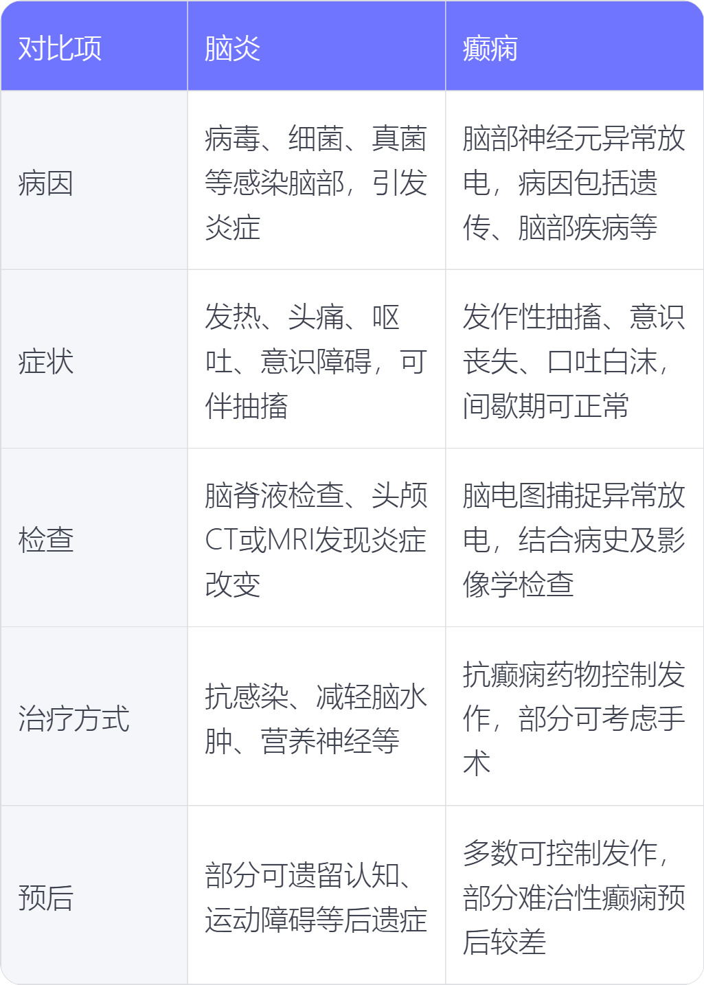 脑炎与癫痫在病因、症状、检查、治疗方式、预后方面存在不同。