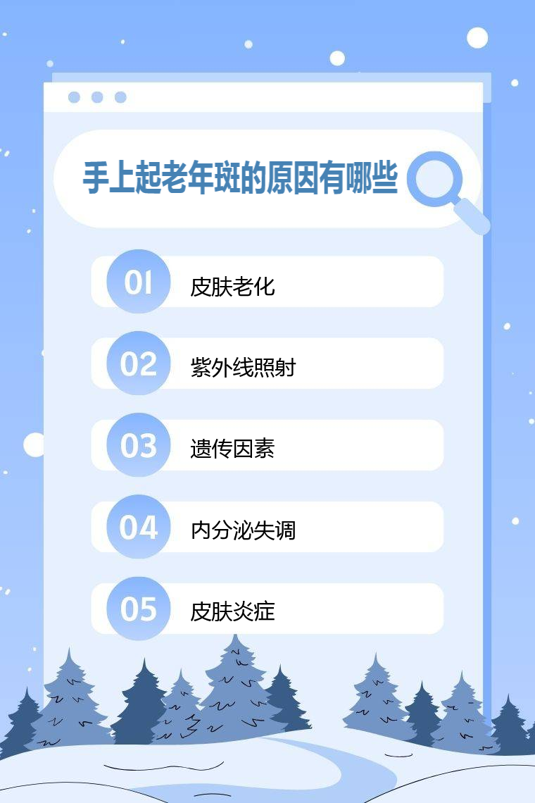 手上起老年斑的原因有皮肤老化、紫外线照射、遗传因素、内分泌失调、皮肤炎症等。