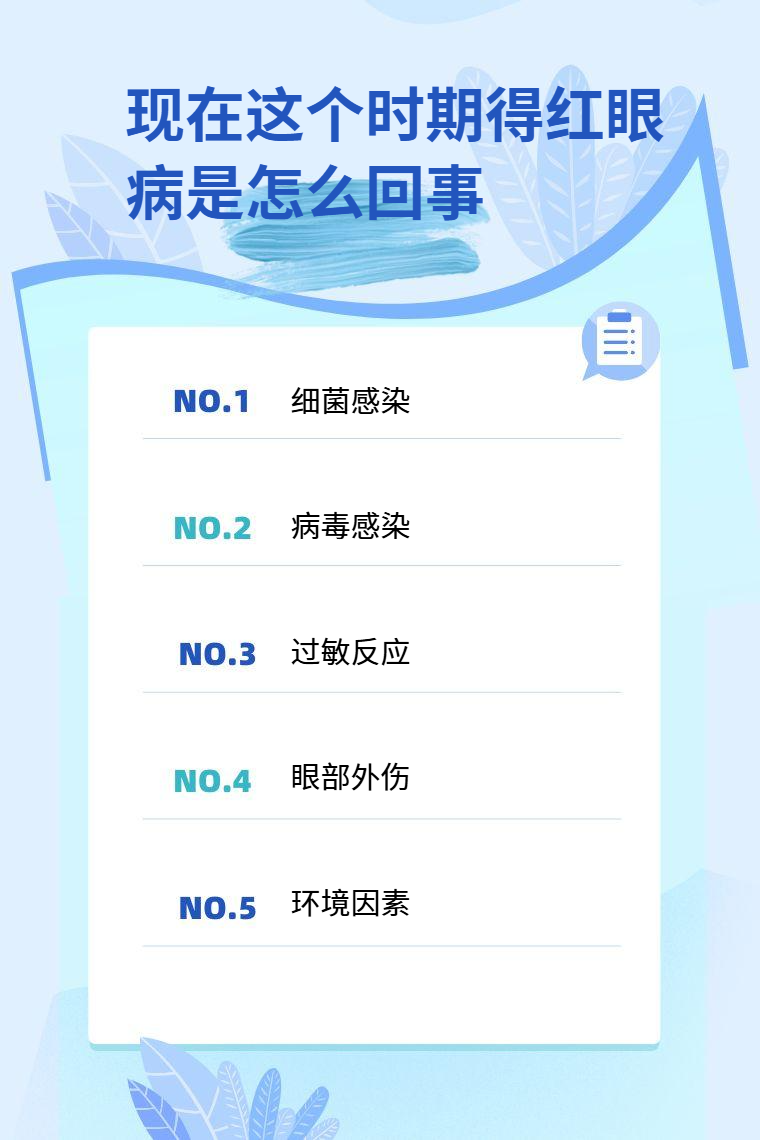 现在这个时期得红眼病可能是因细菌感染、病毒感染、过敏反应、眼部外伤、环境因素等。