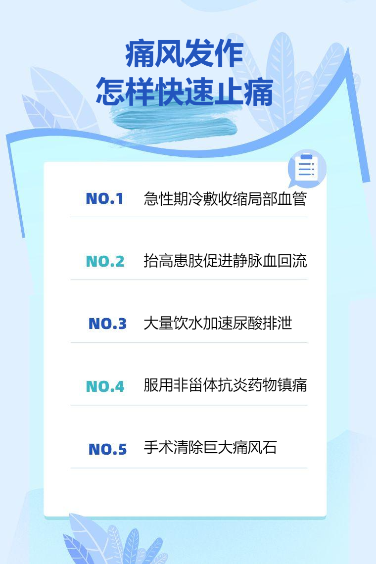 痛风发作时可通过冷敷、抬高患肢、多喝水、服用药物、手术治疗等快速止痛。
