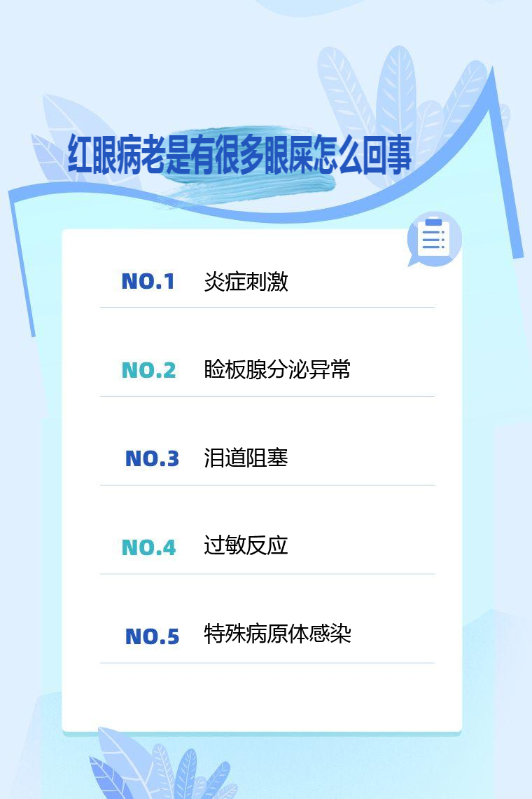 红眼病老是有很多眼屎,常见原因有炎症刺激、睑板腺分泌异常、泪道阻塞、过敏反应、特殊病原体感染等。