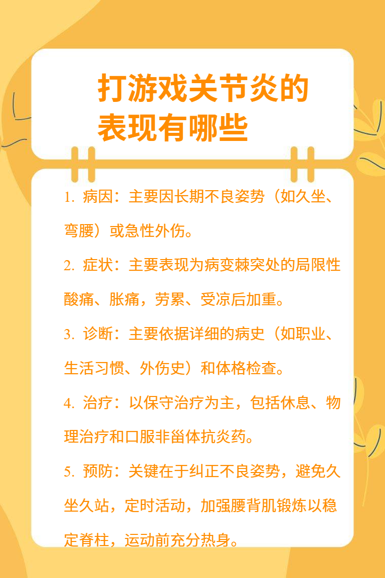 日常应注意合理安排游戏时间,避免长时间连续打游戏,适当进行关节活动和锻炼,保持正确的游戏姿势。若出现上述症状,应及时就医检查,遵循医生的诊断和治疗建议,以免病情进一步发展。