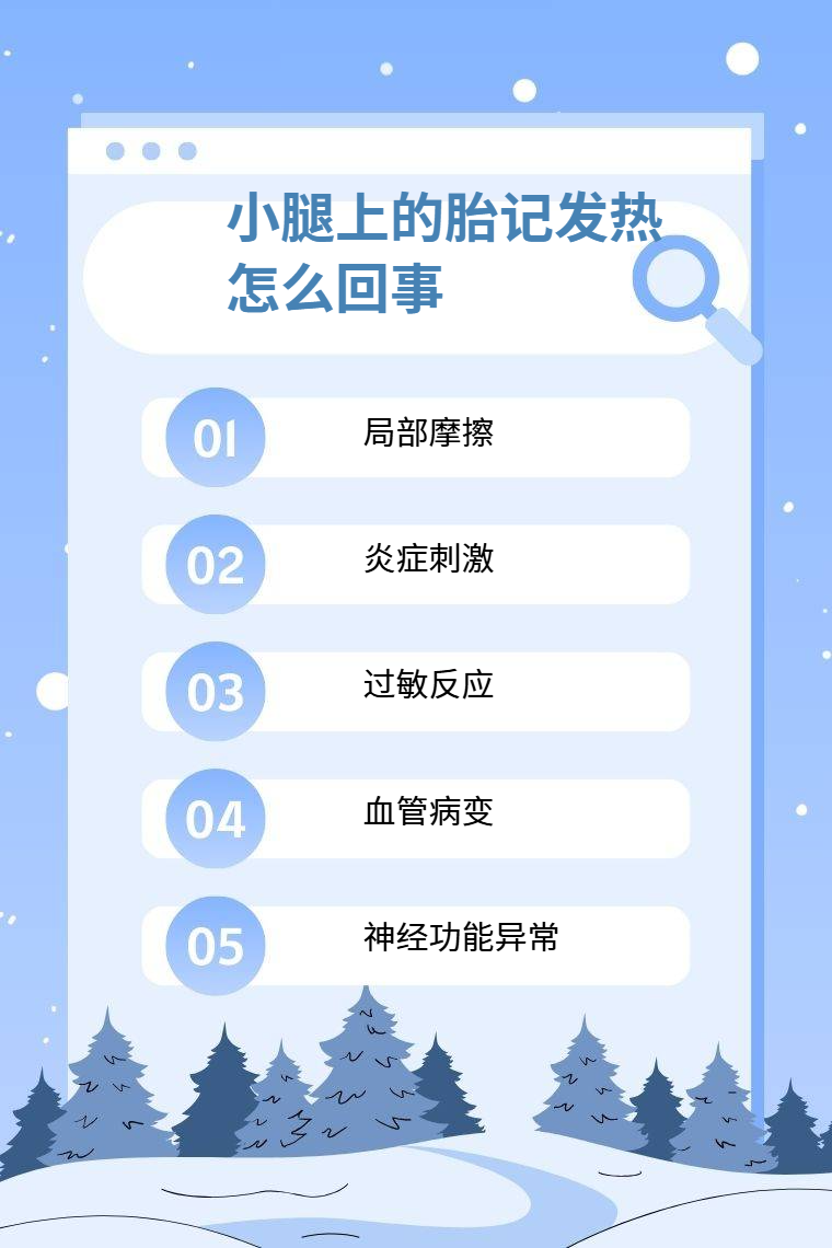 1. 局部摩擦:日常活动中,小腿部位的胎记易因衣物过紧、长时间行走摩擦等,致使局部皮肤升温,出现发热现象。比如长期穿着紧身裤,不断与胎记处皮肤摩擦,就可能引发这种情况。