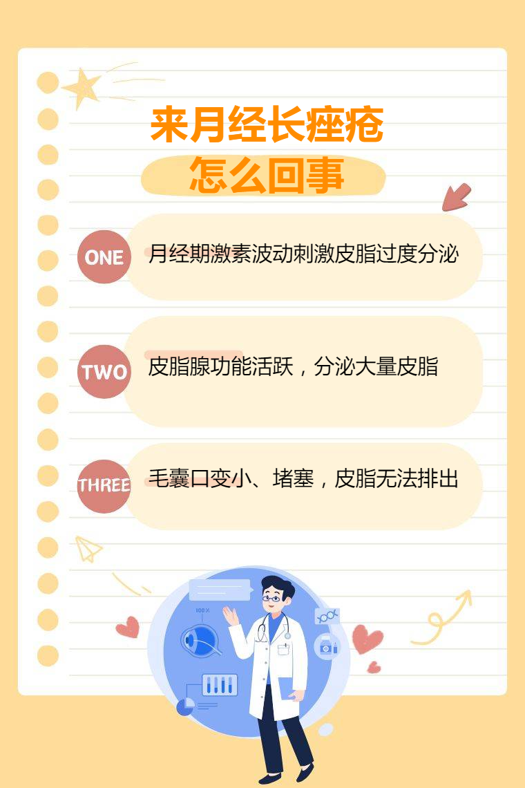 1. 激素水平变化:在月经周期中,体内激素水平会发生波动。雌激素水平下降,雄激素相对升高,雄激素可刺激皮脂腺增大以及皮脂分泌增加,从而导致痤疮的产生。